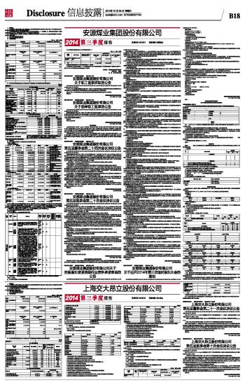 证券代码:600397 证券简称:安源煤业 安源煤业集团股份有限公司2014第三季度报告 2014-10-25 来源:证券时报网 作者: