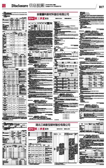 证券代码:600255 证券简称:鑫科材料 安徽鑫科新材料股份有限公司2014第三季度报告 2014-10-25 来源:证券时报网 作者:
