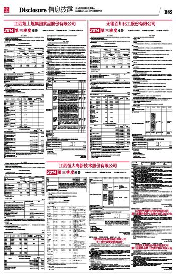 江西煌上煌集团食品股份有限公司2014第三季度报告