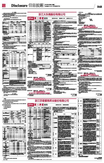 浙江大东南股份有限公司2014第三季度报告 2014-10-28 来源:证券时报网 作者: