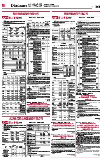 岳阳林纸股份有限公司2014第三季度报告 2014-10-28 来源:证券时报网 作者: