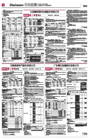 大连橡胶塑料机械股份有限公司2014第三季度报告 2014-10-28 来源:证券时报网 作者:
