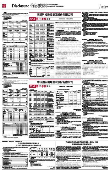 证券代码:600862 证券简称:南通科技 南通科技投资集团股份有限公司2014第三季度报告 2014-10-28 来源:证券时报网 作者:
