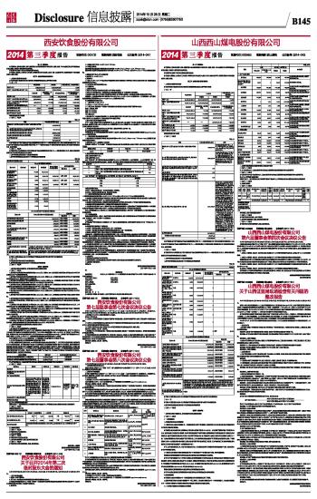 证券代码:000983 证券简称:西山煤电 公告编号:2014-043 山西西山煤电股份有限公司2014第三季度报告 2014-10-28 来源:证券时报网 作者: