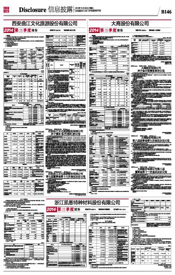 证券代码:600694 证券简称:大商股份 大商股份有限公司2014第三季度报告 2014-10-28 来源:证券时报网 作者: