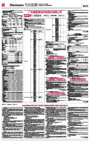 证券代码:002446 证券简称:盛路通信 公告编号:2014-051 广东盛路通信科技股份有限公司2014第三季度报告 2014-10-28 来源:证券时报网 作者: