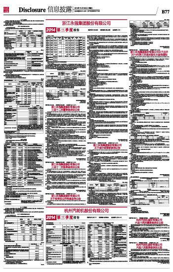 杭州汽轮机股份有限公司2014第三季度报告
