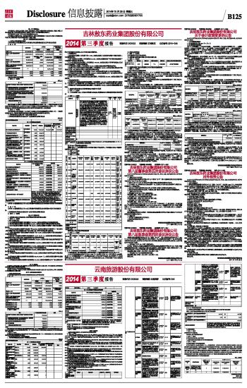 云南旅游股份有限公司2014第三季度报告 2014-10-29 来源:证券时报网 作者: