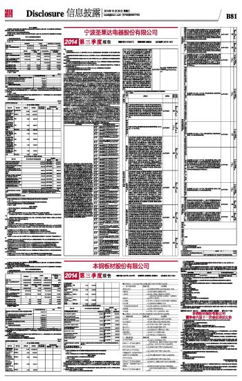 宁波圣莱达电器股份有限公司2014第三季度报告