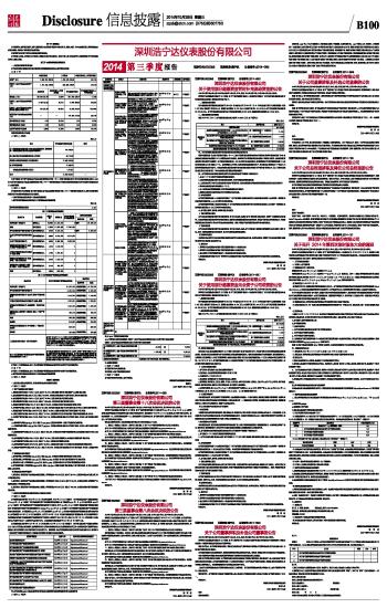 深圳浩宁达仪表股份有限公司2014第三季度报告