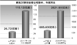 创业板28个长子不负众望首批28家上市企业五年总收入增长达213%,总市值增长268% 2014-10-30 来源:证券时报网 作者:胡学文