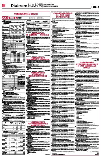 中国建筑股份有限公司2014第三季度报告 2014-10-31 来源:证券时报网 作者: