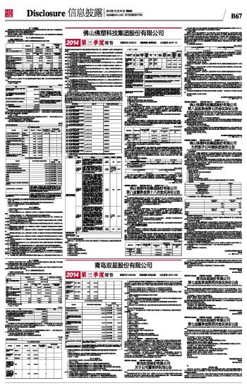 青岛双星股份有限公司2014第三季度报告 2014-10-31 来源:证券时报网 作者: