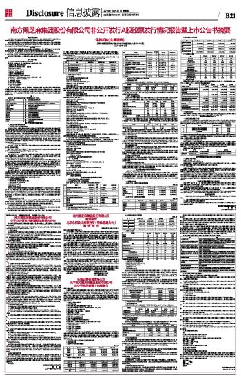 长城证券有限责任公司 关于南方黑芝麻集团股份有限公司 非公开发行股票上市保荐书 深圳证券交易所: 经《关于核准南方黑芝麻集团股份有限公司非公开发行股票的批复》(证监许可[2014]979号)核准,南方黑芝麻集团股份有限公司(以下简称“南方食品”、“公司”或“发行人”)向特定投资者非公开发行股票不超过8,147万股新股,本次实际发行数量为65,972,222股。长城证券有限公司(以下简称“长城证券”或“本机构”)认为南方食品申请本次非公开发行股票上市符合《中华人民共和国公司法》、《中华人民共和国证券法》、《上市公司证券发行管理办法》及《深圳证券交易所股票上市规则》的有关规定,特推荐其非公开发行股票在贵所上市交易。现将有关情况报告如下: 一、南方食品的基本情况 (一)发行人概况 1、中文名称:南方黑芝麻集团股份有限公司 英文名称:NANFANG BLACK SESAME GROUP CO.,LTD. 2、股票上市地:深圳证券交易所 3、股票简称及代码:南方食品 000716 4、法定代表人:韦清文 5、成立时间:1993年5月31日 6、注册资本:24,600.00万元 7、注册号:450000000007643 8、国税、地税登记证:450921198225511 9、注册地址:广西容县城南规划工业集中区黑五类产业园 10、办公地址:广西南宁市双拥路36号 11、邮政编码:530022 12、电话:0771-5308096 13、传真:0771-5308090 14、行业:食品制造业 15、经营范围:资产经营;对食品、管道燃气、物流、物业管理、航空服务项目的投资(国家有专项规定的按专项规定办理);房屋租赁;国内商业贸易(国家有专项规定的除外);自营和代理各类商品及技术进出口业务(国家限定公司经营或禁止进出口的商品及技术除外);经营进料加工和“三来一补”业务;经营对外贸易和转口贸易;设计、制作、发布自有媒体广告;批发兼零售预包装食品。 (二)发行人最近三年主要会计数据和财务指标 1、主要财务数据 (1)合并资产负债表主要数据 单位:元