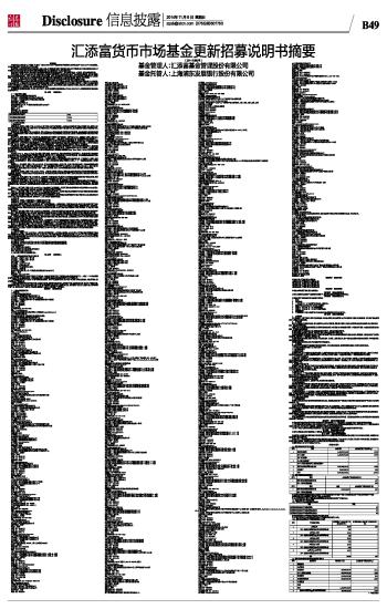 汇添富货币市场基金更新招募说明书摘要(2014年第2号) 2014-11-06 来源:证券时报网 作者: