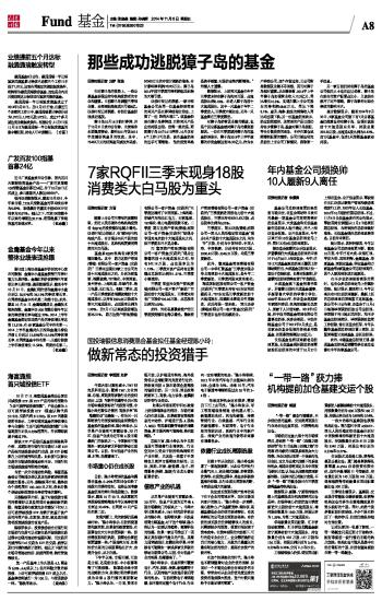 那些成功逃脱獐子岛的基金 2014-11-06 来源:证券时报网 作者:刘梦 张佳