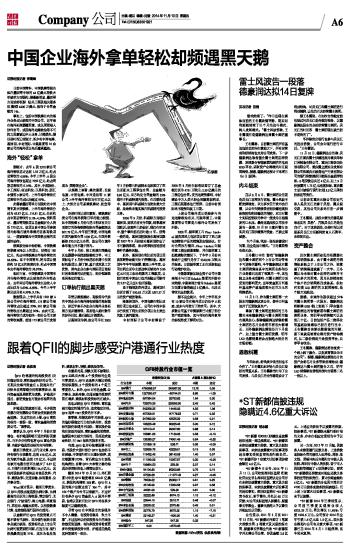 跟着QFII的脚步感受沪港通行业热度 2014-11-13 来源:证券时报网 作者:余胜良