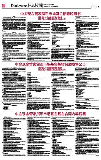 中金现金管家货币市场基金基金合同内容摘要 2014-11-14 来源:证券时报网 作者: