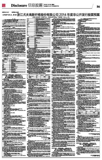 证券代码:002427 证券简称:尤夫股份 浙江尤夫高新纤维股份有限公司2014年度非公开发行股票预案 2014-11-19 来源:证券时报网 作者: