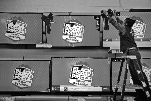 为了迎接即将到来的“黑色星期五”,美国众多零售商计划在感恩节提前开业促销,以吸引顾客。图为美国洛杉矶沃尔玛超市景象。 (CFP/供图)