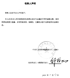 收购人声明 收购人法定代表人声明如下: 本人(以及本人所代表的机构)承诺本报告书及摘要不存在虚假记载、误导性陈述或重大遗漏,并对其真实性、准确性、完整性承担个别和连带的法律责 任。 ■ 律师事务所及签字律师的声明 本人及本人所代表的机构已按照执业规则规定的工作程序履行勤勉尽责义务,对收购报告书及其摘要的内容进行核查和验证,未发现虚假记载、误导性陈述或者重大遗漏,并对此承担相应的责任。 ■ 附表: 收购报告书 ■ ■ 本版导读:
