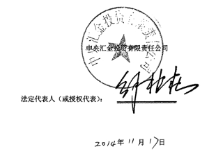 收购人声明 1、 收购人依据《中华人民共和国证券法》(以下简称“《证券法》”)、《上市公司收购管理办法》(以下简称“《收购办法》”)的规定、《公开发行证券公司信息披露内容与格式准则第16号——上市公司收购报告书》(以下简称“《16号准则》”)及相关法律、法规编写本报告书。 2、 依据《证券法》、《收购办法》的规定,本报告书已全面披露了收购人持有、控制光大证券股份有限公司权益的情况。截至本报告书签署之日,除本报告书披露的持股信息外,收购人没有通过任何其它方式在光大证券股份有限公司拥有权益。 3、 收购人签署本报告已获得必要的授权和批准,其履行亦不违反收购人章程或内部规则中的任何条款,或与之相冲突。 4、 中央汇金投资有限责任公司与财政部共同设立中国光大集团股份公司而间接收购光大证券股份有限公司的股份,已取得中华人民共和国财政部和国务院的批准。本次收购已触发要约收购义务,收购人需向中国证券监督管理委员会申请豁免其要约收购义务。本次收购尚需履行中国证券监督管理委员会豁免收购人的要约收购义务的审核程序,尚待根据《证券法》、《证券公司监督管理条例》的相关规定办理有关程序。 5、 本次收购是根据本报告书所载明资料进行的。除收购人和所聘请的专业机构外,没有委托或者授权任何其它人提供未在本报告书中列载的信息和对本报告书做出任何解释或者说明。 第一节 释 义 除非特别说明,以下简称在本报告书中有如下特定含义: ■ 第二节 收购人介绍 一、收购人基本情况 收购人名称:中央汇金投资有限责任公司 注册地址:北京市东城区朝阳门北大街1号新保利大厦 法定代表人:丁学东 注册资本:82,820,862.718388 万元人民币 营业执照注册号码:100000000038533 企业类型:有限责任公司(国有独资) 经营范围:接受国务院授权,对国有重点金融企业进行股权投资;国务院批准的其他相关业务。 税务登记证号码:京税证字110102710932961号 通讯地址:北京市东城区朝阳门北大街1号新保利大厦16层 邮政编码:100010 二、收购人产权及控制关系结构 汇金公司是中投公司的全资子公司,是依据《中华人民共和国公司法》设立的国有独资公司。汇金公司的重要股东职责由国务院行使。汇金公司董事会、监事会成员由国务院任命,对国务院负责。 汇金公司股权结构如下图所示: ■ 三、收购人控股股东的基本情况 中投公司成立于2007年9月29日,是依照《中华人民共和国公司法》设立的国有独资公司,组建宗旨是实现国家外汇资金多元化投资,在可接受风险范围内实现股东权益最大化。公司总部设在北京,注册资本金为2,000亿美元。中投公司根据国务院要求持有汇金公司股权。中投公司开展投资业务和汇金公司代表国家行使股东职能的行为之间有严格的隔离。 四、收购人从事的主要业务及最近三年简要财务状况 (一)收购人从事的主要业务 本公司根据国务院授权,对国有重点金融企业进行股权投资,以出资额为限代表国家依法对国有重点金融企业行使出资人权利和履行出资人义务,实现国有金融资产保值增值。本公司不开展其他任何商业性经营活动,不干预其控股的国有重点金融企业的日常经营活动。 (二)收购人的简要财务状况 本公司2011年度、2012年度及2013年度主要财务数据如下表所示。 单位:万元 ■ 五、收购人在最近五年之内受处罚的情况 本公司最近五年内未受到任何行政处罚、刑事处罚,也未涉及任何与经济纠纷有关的重大民事诉讼或仲裁。 六、收购人董事、监事及高级管理人员基本情况 ■ 上述人员最近五年之内未曾受过行政处罚和刑事处罚,亦未曾涉及与经济纠纷有关的重大民事诉讼或者仲裁。 七、收购人拥有境内外其他上市公司5%以上权益的基本情况 截至本收购报告书签署日,汇金公司直接持有5%以上股份的上市公司的简要情况如下: ■ 八、收购人持有银行、信托公司、证券公司、保险公司等金融机构5%以上股权的情况 截至本收购报告书签署日,除上述上市公司外,汇金公司直接持有金融机构5%以上股权的简要情况如下: ■ 第三节 收购决定及收购目的 本次收购是由汇金公司参与光大总公司重组改制所引起的,即财政部以光大总公司净资产、100%的光大香港股权及对光大总公司2,374,560,000元债权本息出资,本公司以持有的部分光大银行股份及其他资产出资共同设立光大集团股份公司,本公司由此取得光大集团股份公司55.67%股权,从而间接持有光大证券67.25%的权益。 本次收购所履行的相关程序如下: 1、2014年7月21日,经国务院批准,财政部出具《关于光大集团深化重组改革有关问题的批复》。 2、2014年7月31日,本公司董事会召开2014年第三次董事会会议,审议通过了《关于汇金公司参与光大集团重组改革有关事项的议案》。 3、2014年11月6日,本公司与财政部签署《关于发起设立中国光大集团股份公司的发起人协议书》。 4、依据《收购办法》,尚需中国证监会豁免本公司要约收购义务。 5、就本次收购,尚待根据《证券法》、《证券公司监督管理条例》的相关规定办理有关程序。 截至发起人协议签署日,收购人暂无计划在未来12个月内继续增持光大证券股份或者处置其已拥有权益的光大证券股份。 第四节 收购方式 一、收购人控制上市公司股份情况 截至本报告书签署之日,光