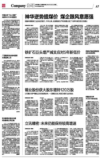 立讯精密:未来仍能保持较高增速 2014-12-02 来源:证券时报网 作者:邓常青