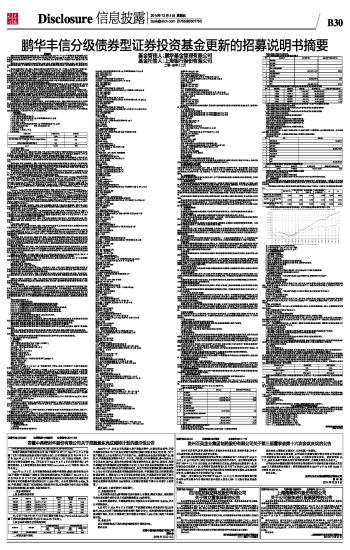 重要提示 鹏华丰信分级债券型证券投资基金(以下简称本基金)经2013年7月18日中国证券监督管理委员会《关于核准鹏华丰信分级债券型证券投资基金募集的批复》(证监许可[2013]938号文)核准,进行募集。根据相关法律法规,本基金基金合同已于2013年10月22日正式生效,基金管理人于该日起正式开始对基金财产进行运作管理。 基金管理人保证本招募说明书的内容真实、准确、完整。本招募说明书经中国证监会核准,但中国证监会对本基金募集的核准,并不表明其对本基金的价值和收益作出实质性判断或保证,也不表明投资于本基金没有风险。 自基金合同生效之日起,丰信A自基金合同生效日起每半年开放一次,于丰信A的申购开放日接受申购,于丰信A的赎回开放日接受赎回,丰信 B 自基金合同生效日起每年开放一次接受投资者的申购或赎回。 总体来看,本基金属于具有中低风险收益特征的基金品种,其长期平均风险和预期收益率低于股票基金、混合基金,高于货币市场基金。从投资者具体持有的基金份额来看,由于基金收益分配的安排,丰信A份额将表现出低风险、低收益的明显特征,其预期收益和预期风险要低于普通的债券型基金份额,但基金管理人并不承诺或保证丰信A的约定收益,在极端情形下,比如基金资产在短期内发生大幅度的投资亏损时,丰信A的基金份额持有人可能会面临无法取得约定收益甚至损失本金的风险。丰信B份额则表现出高风险、高收益的显著特征,其预期收益和预期风险要高于普通的债券型基金份额。 本基金投资于证券市场,基金净值会因为证券市场波动等因素产生波动,投资人在投资本基金前,应全面了解本基金的产品特性,充分考虑自身的风险承受能力,理性判断市场,并承担基金投资中出现的各类风险,包括但不限于:系统性风险、非系统性风险、管理风险、流动性风险、本基金特定风险及其他风险,等等。 基金的过往业绩并不预示其未来表现,基金管理人管理的其他基金的业绩并不构成对本基金表现的保证。 基金管理人依照恪尽职守、诚实信用、谨慎勤勉的原则管理和运用基金财产,但不保证基金一定盈利,也不保证最低收益。基金管理人提醒投资人基金投资的“买者自负”原则,在投资人作出投资决策后,基金运营状况与基金净值变化引致的投资风险,由投资人自行承担。基金管理人管理的其他基金的业绩并不构成对本基金表现的保证。投资有风险,投资人在投资本基金前应认真阅读本基金的招募说明书和基金合同,并根据自身风险承受能力选择适合自己的基金产品予以投资。 本摘要根据基金合同和基金招募说明书编写,并经中国证监会核准。基金合同是约定基金当事人之间权利、义务的法律文件。基金投资人自依基金合同取得基金份额,即成为基金份额持有人和本基金合同的当事人,其持有基金份额的行为本身即表明其对基金合同的承认和接受,并按照《基金法》、《运作办法》、基金合同及其他有关规定享有权利、承担义务。基金投资人欲了解基金份额持有人的权利和义务,应详细查阅基金合同。 本招募说明书已经本基金托管人复核。本招募说明书所载内容截止日为2014年10月21日,有关财务数据和净值表现截止日为2014年9月30日(未经审计)。 一、基金管理人 (一)基金管理人概况 1、名称:鹏华基金管理有限公司 2、住所:深圳市福田区福华三路168号深圳国际商会中心43层 3、设立日期:1998年12月22日 4、法定代表人:何如 5、办公地址:深圳市福田区福华三路168号深圳国际商会中心43层 6、电话:(0755)82021233 传真:(0755)82021155 7、联系人:吕奇志 8、注册资本:人民币1.5亿元 9、股权结构: ■ (二)主要人员情况 1、基金管理人董事会成员 何如先生,董事长,硕士,高级会计师,国籍:中国。历任中国电子器件公司深圳公司副总会计师兼财务处处长、总会计师、常务副总经理、总经理、党委书记,深圳发展银行行长助理、副行长、党委委员、副董事长、行长、党委副书记,现任国信证券股份有限公司董事长、党委书记,鹏华基金管理有限公司董事长。 邓召明先生,董事,经济学博士,讲师,国籍:中国。历任北京理工大学管理与经济学院讲师、中国兵器工业总公司主任科员、中国证监会处长、南方基金管理有限公司副总经理,现任鹏华基金管理有限公司总裁、党总支书记。 孙煜扬先生,董事,经济学博士,国籍:中国。历任贵州省政府经济体制改革委员会主任科员、中共深圳市委政策研究室副处长、深圳证券结算公司常务副总经理、深圳证券交易所首任行政总监、香港深业(集团)有限公司助理总经理、香港深业控股有限公司副总经理、中国高新技术产业投资管理有限公司董事长兼行政总裁、鹏华基金管理有限公司董事总裁, 现任国信证券股份有限公司副总裁。 周中国先生,董事,会计学硕士研究生,国籍:中国。曾任深圳市华为技术有限公司定价中心经理助理;2000年7月起历任国信证券有限责任公司资金财务总部业务经理、外派财务经理、高级经理、总经理助理、副总经理;2009年2月至今任国信证券股份有限公司人力资源总部副总经理。 Massimo Mazzini先生,董事,经济和商学学士。国籍:意大利。曾在安达信(Arthur Andersen MBA)从事风险管理和资产管理工作,历任CA AIPG SGR投资总监、CAAM AI SGR及CA AIPG SGR首席执行官和投资总监、东方汇理资产管理股份有限公