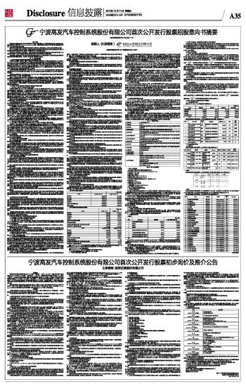 宁波高发汽车控制系统股份有限公司首次公开发行股票招股意向书摘要宁波市鄞州投资创业中心(下应北路717号) 2014-12-11 来源:证券时报网 作者: