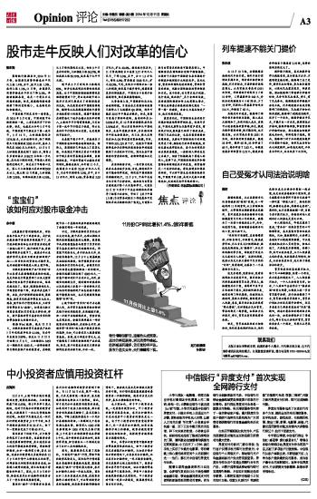 焦点评论 股市走牛反映人们对改革的信心 2014-12-11 来源:证券时报网 作者:陈东海