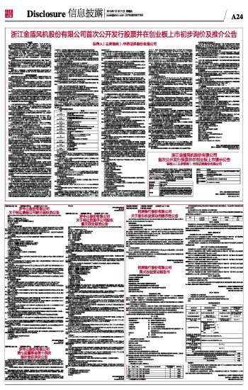 浙江金盾风机股份有限公司首次公开发行股票并在创业板上市初步询价及推介公告 2014-12-11 来源:证券时报网 作者: