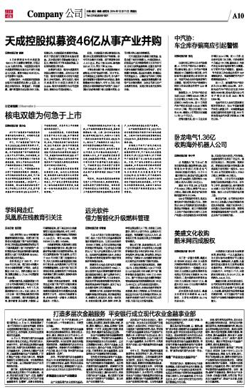 见习记者 倪天歌 日前,学科网在2014中国国际智慧教育展获奖的消息,再度引发了投资者对凤凰系旗下资产运作的猜想。作为江苏凤凰出版传媒集团有限公司(下称凤凰集团)旗下的优质资产,学科网是否会在国企改革风潮中被凤凰集团注入旗下的凤凰传媒(601928),成为市场关注的焦点。 学科网成立于2003年,并于2004年正式上线,现已成为中国最大的中小学教育资源门户网站,会员总数达1349万人,资料总数达389万套,资源总量超1.1万GB,日均更新资料3000套。 值得注意的是,凤凰集团旗下的上市公司凤凰传媒近年来也正在积极拓展在线教育业务。今年7月,凤凰传媒曾在在上证e互动上表示,自上市以来一直在围绕战略推进并购重组、加快转型,现已形成游戏、影视、数字教育、职业教育、大数据、云印刷等新板块,接下来还会在在线教育等方面加快并购步伐。今年上半年,凤凰传媒旗下的数字传媒公司销售收入1.06亿元,增长443.38%,利润3352.94万元,增长1163.88%。 在线教育领域,凤凰传媒主要致力于教材教辅的数字化,建立数字化教研平台和数字化校园管理平台,依托互联网服务推广职业教育。公司已于2012年并购了厦门创壹软件公司,并大力拓展职业教育虚拟实训软件开发业务。由凤凰传媒子公司开发的智慧课堂模型,目前已推广到江苏省部分学校,该模型利用了手持设备和多媒体三屏互动模式,按照学校和学生使用数目收费。 根据江苏国企改革要求,省属国企应对旗下资产进行功能性重组和资源整合,避免同业竞争。而凤凰传媒和凤凰学易作为省属国企凤凰集团的子公司,均涉足在线教育业务,未来会否进一步整合,无疑是凤凰系的一大看点。 本版导读: