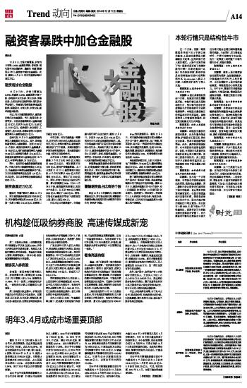 融资客暴跌中加仓金融股 2014-12-11 来源:证券时报网 作者:郑灶金