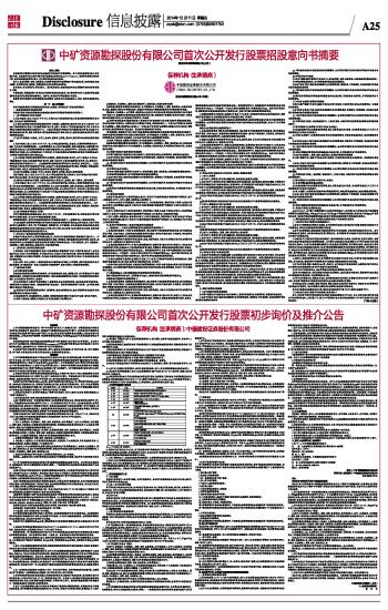 中矿资源勘探股份有限公司首次公开发行股票初步询价及推介公告