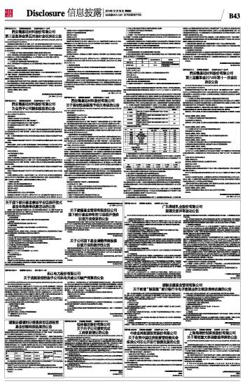证券代码:600644 股票简称:乐山电力 编号:临2014-081 乐山电力股份有限公司 关于法院受理控股子公司乐电天威公司破产清算的公告 本公司董事会及全体董事保证本公告内容不存在任何虚假记载、误导性陈述或者重大遗漏,并对其内容的真实性、准确性和完整性承担个别及连带责任。 乐山电力股份有限公司(以下简称"乐山电力")于2014年11月17日召开第八届董事会第十三次临时会议、2014年12月3日召开2014年第三次临时股东大会审议通过了《关于向乐山市中级人民法院申请控股子公司乐山乐电天威硅业科技有限公司破产清算的议案》(详见公司于2014年11月18日、12月4日在上海证券交易所网站和《中国证券报》《上海证券报》《证券时报》《证券日报》上披露的临时公告)。2014年12月3日,乐山电力以债权人身份向四川省乐山市中级人民法院(以下简称"乐山中院")申请对公司持股51%的控股子公司乐山乐电天威硅业科技有限责任公司(以下简称"乐电天威公司")进行破产清算。 2014年12月17日,乐山电力收到《四川省乐山市中级人民法院民事裁定书》[(2014)乐民破预字第3-1号]和《四川省乐山市中级人民法院决定书》[(2015)乐民破字第1-1号],乐山中院于2014年12月17日受理乐山电力对乐电天威公司的破产清算申请。现将有关情况公告如下: 一、法院裁定受理破产申请概述 (一)破产申请简述: 1.申请人:乐山电力股份有限公司 2.申请时间:2014年12月3日 3.破产清算申请事由:乐电天威公司不能清偿到期债务 (二)法院裁定时间:2014年12月17日 (三)裁定书主要内容: 乐山中院认为,乐电天威公司系乐山市工商行政管理局登记注册成立的企业法人,该院对本案有管辖权。申请人乐山电力确对被申请人乐电天威公司享有到期债权,而乐电天威公司未清偿到期债务,在法定期限内,乐电天威公司亦未对乐山电力提交的破产申请提出异议。依据《中华人民共和国破产法》第二条第一款、第三条、第七条第(二)款、第十条第(一)款、《最高人民法院关于<中华人民共和国企业破产法>若干问题的规定(一)》第二条、第六条第(一)款之规定,裁定如下: 受理乐山电力股份有限公司对乐山乐电天威硅业科技有限责任公司的破产清算申请。 本裁定自2014年12月17日起生效。 二、法院指定管理人情况 乐山中院指定乐山乐电天威硅业科技有限责任公司清算组担任乐山乐电天威硅业科技有限责任公司管理人。 乐山乐电天威硅业科技有限责任公司清算组成员由乐山市国有资产监督管理委员会、乐山市经济和信息化委员会等市级相关部门人员以及北京市金杜律师事务所人员组成。 三、风险提示 乐山电力将根据乐电天威公司的破产清算进程及时履行相应的信息披露义务,敬请广大投资者理性投资,注意投资风险。 特此公告。 乐山电力股份有限公司 2014年12月18日 浦银安盛基金管理有限公司 关于新增“银联通”部分银行卡电子直销业务功能及费率优惠的公告 为进一步方便投资者通过公司电子直销平台投资浦银安盛基金管理有限公司(以下简称为"本公司")旗下基金,本公司与上海银联电子支付服务有限公司(简称"银联通")合作,在本公司电子直销平台新增工商银行、农业银行、建设银行、交通银行、中国银行、光大银行、民生银行、平安银行、邮政储蓄银行的借记卡为"银联通"基金第三方支付渠道。现将业务详情公告如下: 一、业务开通时间 自2014年12月19日起。 二、适用投资人范围 具备合法基金投资资格的工商银行、农业银行、建设银行、交通银行、中国银行、光大银行、民生银行、平安银行、邮政储蓄银行借记卡持卡人。 三、适用基金范围 本公司已开通电子直销业务的开放式基金,本公司旗下今后募集和管理的基金自开通认/申购之日起将自动适用,不再另行公告。 四、适用业务范围 本公司旗下基金的开户、认购、申购、赎回、转换、现金宝、账户资料变更、分红方式变更、信息查询等业务,暂不支持定期定额申购业务。 五、适用费率 1、投资者使用上述"银联通"新增银行卡认购/申购本公司旗下基金,可享受费率优惠(仅限前端认购/申购模式), 即原认购/申购费率高于0.6%,认购/申购费率按4折优惠,但优惠后认购/申购费率如果低于0.6%,则按0.6%执行;原认购/申购费率低于、等于0.6%或为固定费用的,则执行原认购/申购费率。 2、投资者使用上述"银联通"新增银行卡使用"现金宝"业务适用"现金宝"业务相关公告中的交易费率,"现金宝"业务详情参见本公司《关于电子直销平台开通"现金宝"业务的公告》。 3、赎回费率及转换费率依照本公司公布的基金相关公告执行。 4、本公司可对上述费率进行调整,并依据相关法规的要求进行公告。 六、投资者可通过以下途径了解或咨询详情 1、浦银安盛基金管理有限公司 联系地址:上海市淮海中路381号中环广场38楼 邮 编:200020 客服专线:021-33079999 4008828999 网址:www.py-axa.com 七、风险提示: 本公司承诺以诚实信用、勤勉尽责的原则管理和运用基金资产,但不保证基金一定盈利,也不保证最低收益。敬请投资者注意投资风险。 投资者申请使用本公司电子直销业务前,应认真阅读有关网上交易协议、相关规则,了解网上交易的固有风险。投资者应慎重选择,并在使用时妥善保管好网上交易信息,特别是相关账号和密码。 特此公告。 浦银安盛基金管理有限公司 2014年12月18