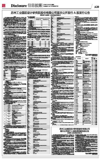 苏州工业园区设计研究院股份有限公司首次公开发行A股发行公告