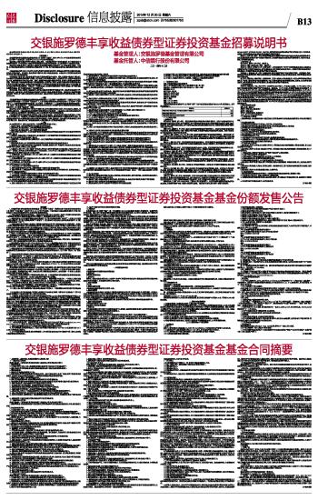 交银施罗德丰享收益债券型证券投资基金基金份额发售公告