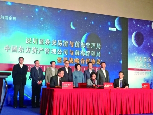 图片新闻 前海管理局与深交所、东方资产开展战略合作 前海金控启动赴港发债 2014-12-23 来源:证券时报网 作者:杨晨
