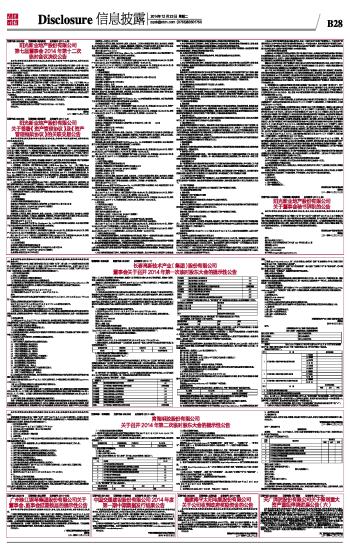 阳光新业地产股份有限公司公告(系列) 2014-12-23 来源:证券时报网 作者: