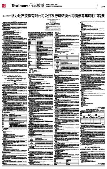 股票代码: 600185 股票简称: 格力地产 格力地产股份有限公司公开发行可转换公司债券募集说明书摘要(广东省珠海市情侣北路3333号28栋201室) 2014-12-23 来源:证券时报网 作者: