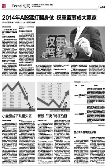 2014年A股猛打翻身仗 权重蓝筹成大赢家
