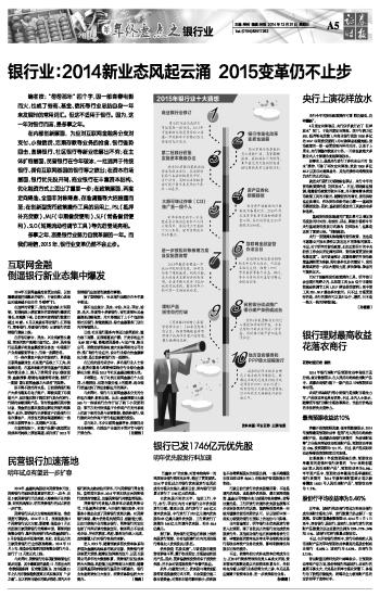 2014年,金融机构股权向民营资本开放,民营银行的破冰便是重要内容之一。如今,首批5家民营银行已迅速进入筹建和开业的阶段,研究机构预计,明年民营银行的试点将进一步扩容。 民营银行从试点方案亮相到落地,推进速度可谓较快。2014年3月,国务院批准5个民营银行试点方案。紧接着,银监会7月正式批准三家民营银行的筹建申请,即深圳前海微众银行、温州民商银行和天津金城银行。9月份银监会再批准两家,至此,首批试点的五家民营银行已全部获准筹建。2014年12月上旬,银监会批准深圳前海微众银行开业,该行于12月底正式上线。 与此同时,民营银行的各项配套政策也在逐步完善,其中最重要的就是11月底出台的《存款保险条例(征求意见稿)》。这令酝酿21年之久的存款保险制度离正式实施仅有“一步之遥”。加之利率市场化的逐步推进,国内大中银行将失去政府信用背书,而与民营银行同台竞技。监管层亦表示,2015年将加快出台民营银行发展指导意见,完善民营银行持续监管框架。 民营银行的发起人很多本身就是民营公司,于是差异化经营、与大银行错位竞争、专注服务小微企业成了民营银行发展关键。对民营银行来说,最大优势是机制灵活,创新能力强,比如已获准开业的微众银行,网络银行的定位也给了外界足够的想象空间,物理网点不设或者少设,所有的获客、风控、服务均在线上完成,这将颠覆人们对银行机构的理解。 进入2015年,随着国家多层次资本体系和多层次金融机构体系的逐步完善,民营银行将迎来更大发展;随着征信牌照的放开,以及互联网公司多年的大数据积累,民营银行征信成本将大大降低,风控能力也将得到巨大提高;随着互联网基因和传统银行基因的不断融合,银行业生态将发生巨大变化,消费者体验也将大大提升。(梅菀) 本版导读: