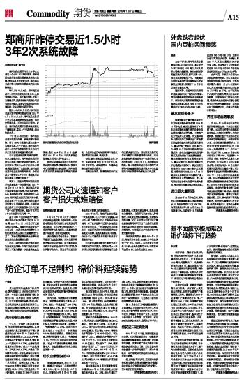 郑商所昨停交易近1.5小时 3年2次系统故障
