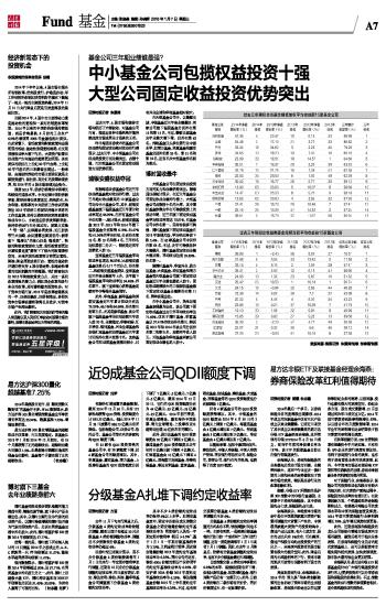 中小基金公司包揽权益投资十强 大型公司固定收益投资优势突出