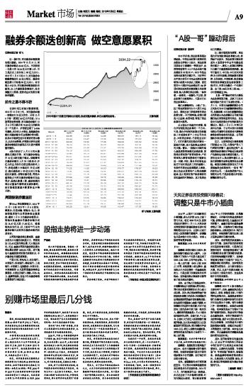 证券时报记者 邓飞 近一段时间,两市融券余额规模实现三级跳。2014年12月31日,两市融券余额达82.83亿元,不仅较前一交易日的76.24亿元大幅上升,而且是历史上首次站上80亿元关口。2015年1月5日至6日,两市融券余额继续稳定在83亿元附近,融券余额连续3天站稳80亿元关口。有市场人士认为,两市融券余额迭创历史新高,加上大盘阶段涨幅较大,技术调整压力显著,投资者应对短期市场保持谨慎。 前车之鉴不得不防 证券时报记者统计数据发现,2014年12月中上旬,两市融券余额一直稳定在70亿元左右,只有12月8日曾一度逼近80亿元天花板。从A股同期走势来看,两市融券余额在12月8日当日飙升至79.80亿元的新高后一个交易日,沪指便出现了5.43%的暴跌。有分析人士指出,虽然融券余额在两融余额中所占规模非常有限,但其对市场多空走向有重要的指示意义。从历史走势看,沪深股市多次出现融券余额创历史新高后不久便大幅调整的情况。 A股在经历了上月8日的天量暴跌后重拾升势,两市融券余额也在70亿元附近趋于稳定。但随着两市融券余额在上月24日跌至61.07亿元的全月低谷后便出现台阶式上行,先是连续3天稳定在75亿元附近,然后就是站上80亿元关口并迭创历史新高。值得注意的是,同期大盘高低点与两市融券余额变化完全同步,虽然从数量上看,融券规模仍难以对整体行情形成实质性影响,但市场做空意愿不断累积也不得不防。 周期股融券量居前 据Wind资讯数据统计,2014年12月1日至2015年1月6日期间,建筑业、交通运输、制造业、电力、采掘等强周期行业同期净卖出量居前。截至1月6日的融券余额显示,制造业及金融业的融券余额分别达18.67亿元及17.56亿元,遥遥领先其他行业,仅上述两个行业的融券余额已占到两市融券余额的四成有余。 从同期的融券卖出量来看,金融业是当之无愧的活跃度之王,同期高达122.40亿股的卖出量,无人能出其右。不过,金融业同期的融券偿还量比卖出量还要多1690.98万股,这可能也与金融股强者恒强的表现有关,不少融券客只能忍痛离场。 个股方面,国电电力、农业银行、中国银行、招商银行、建设银行、工商银行、中国重工、包钢股份、中国石化、中国建筑等10只股同期融券净卖出量居前,主要出自银行、钢铁、石油、电力、基建等板块,这也与行业融券净卖出量居前行业相匹配。 本版导读: