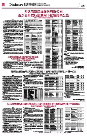 万达电影院线股份有限公司首次公开发行股票网下配售结果公告