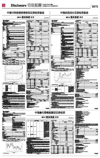 中海可转换债券债券型证券投资基金2014第四季度报告 2015-01-20 来源:证券时报网 作者: