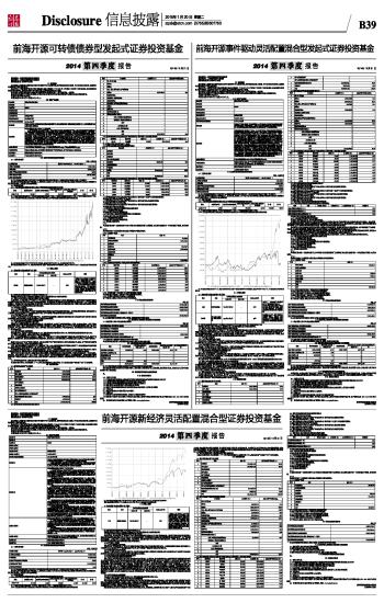 前海开源事件驱动灵活配置混合型发起式证券投资基金2014第四季度报告2014年12月31日 2015-01-20 来源:证券时报网 作者: