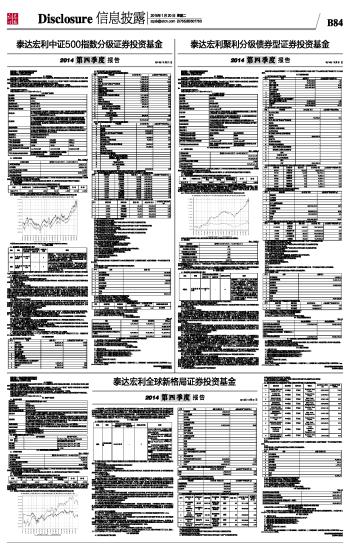 泰达宏利聚利分级债券型证券投资基金2014第四季度报告 2015-01-20 来源:证券时报网 作者: