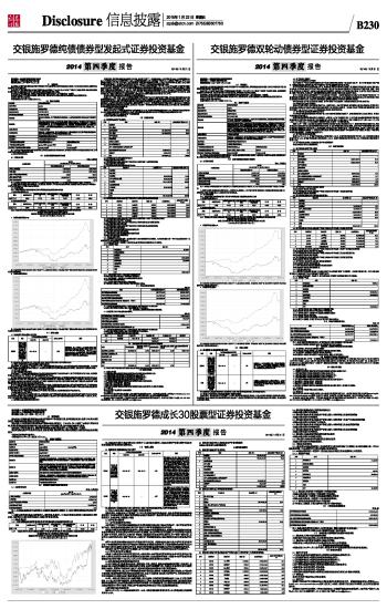 交银施罗德纯债债券型发起式证券投资基金2014第四季度报告 2015-01-22 来源:证券时报网 作者: